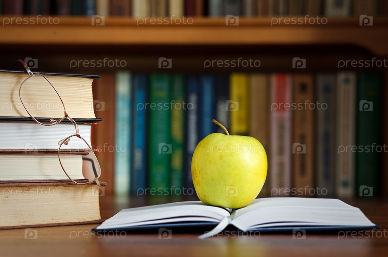 Яблоко на открытой книге