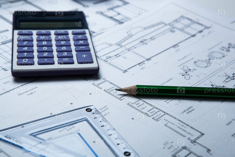Чертеж на бумаге и инструменты