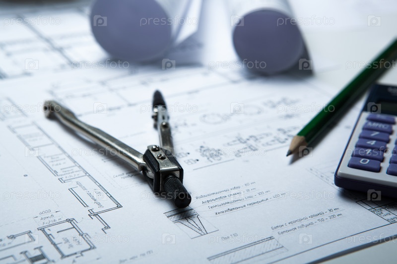 Чертеж на бумаге и инструменты