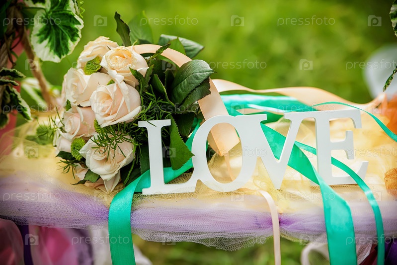 Слово ЛЮБОВЬ и цветы
