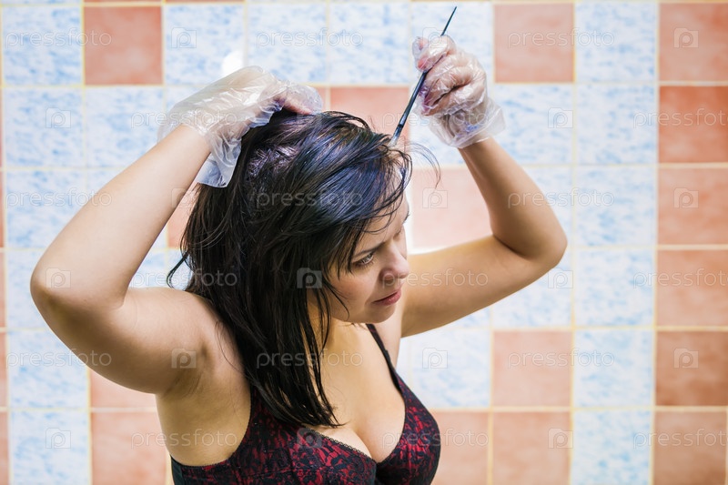 Молодая женщина красит волос