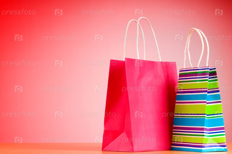 Два разноцветных пакета на красном фоне