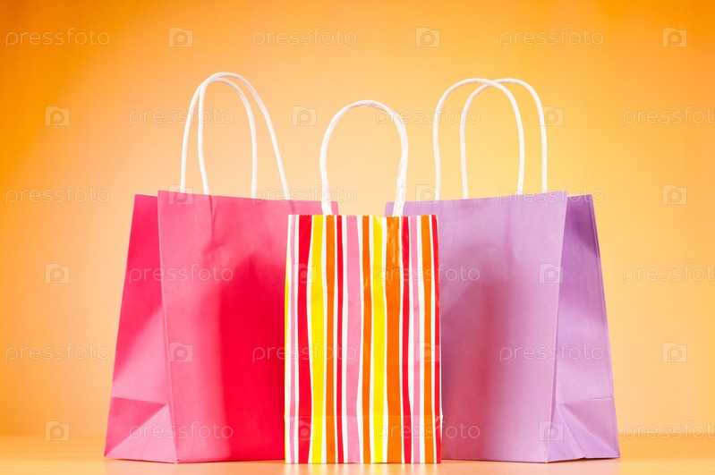 Три разноцветных пакета на оранжевом фоне