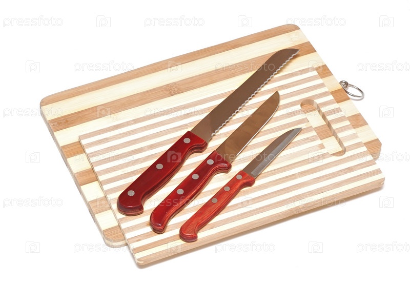 Кухонные ножи на разделочных досках