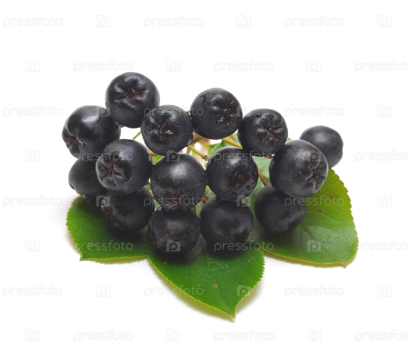 Гроздь черноплодной рябины на белом фоне