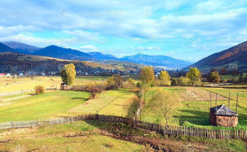 Осенью в горном селе. Карпатские горы, Украина