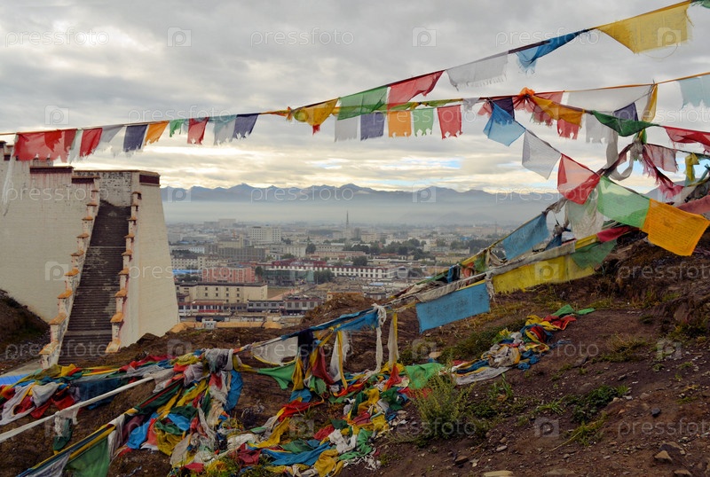 Тибетские буддийские молитвенные флаги в Шигадзе