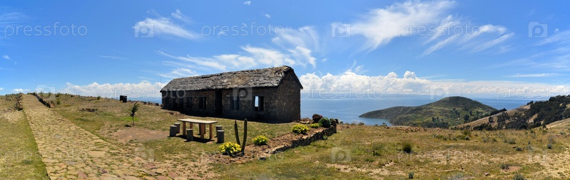 Дом на озере Титикака между Боливией и Перу