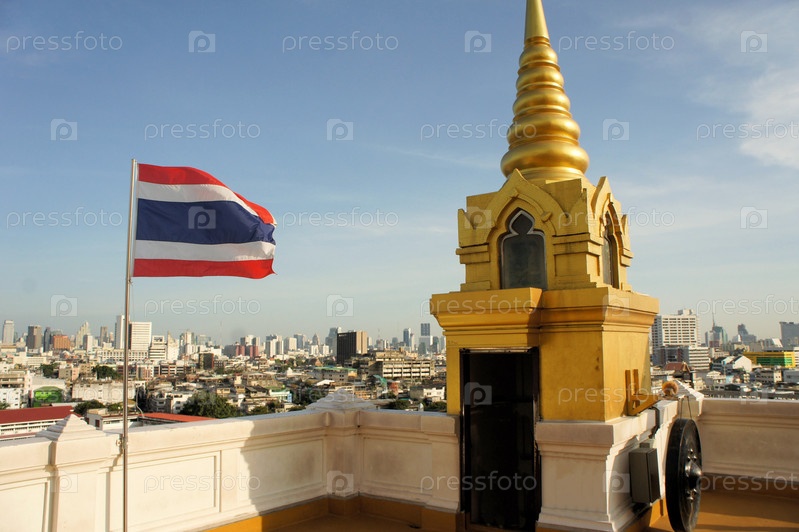 Флаг и город Бангкок, Таиланд