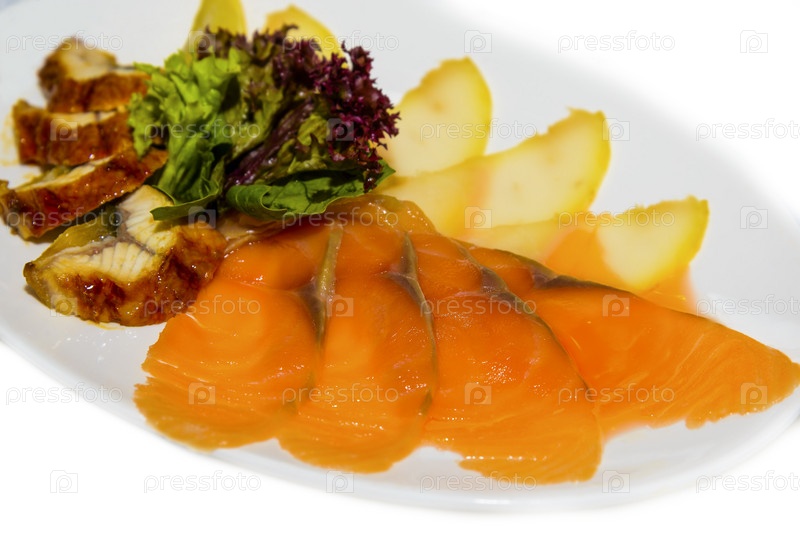 Копченый лосось и форель с салатом