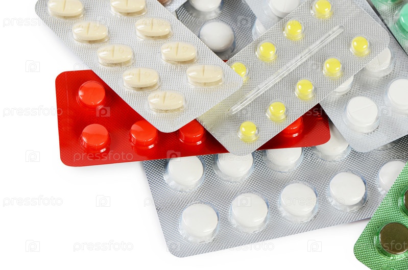 Таблетки в упаковках, изолированные на белом
