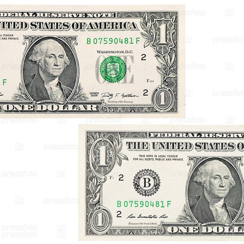 Один доллар, изолированный на белом фоне