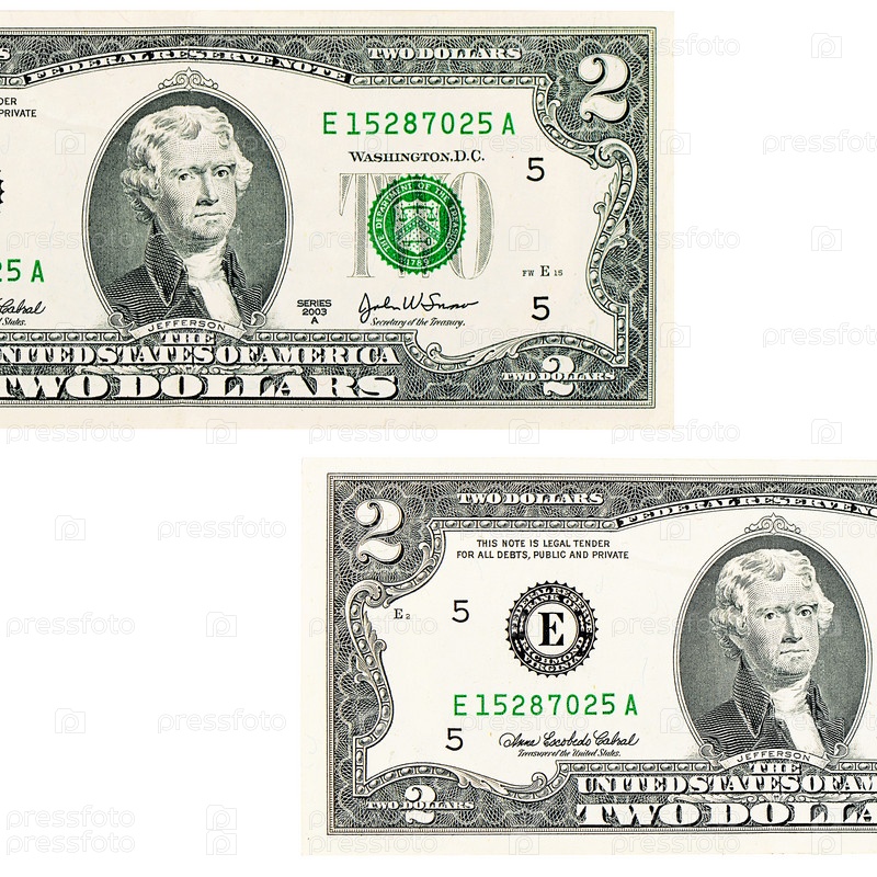 Два доллара, изолированные на белом фоне