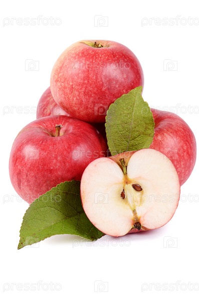 Красные свежие яблоки, изолированные на белом фоне