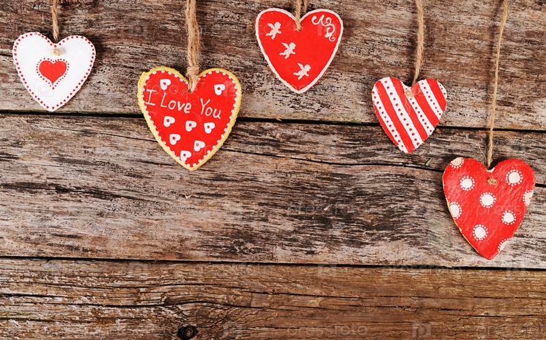 Сердца на деревянном фоне. День Святого Валентина