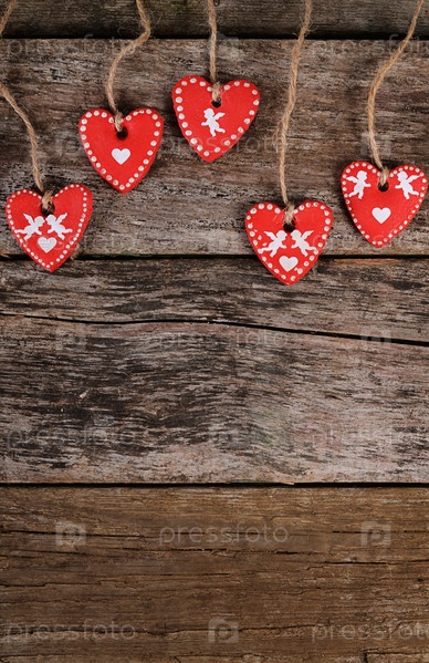 Сердца на деревянном фоне. День Святого Валентина