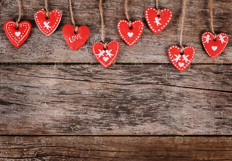 Сердца на деревянном фоне. День Святого Валентина