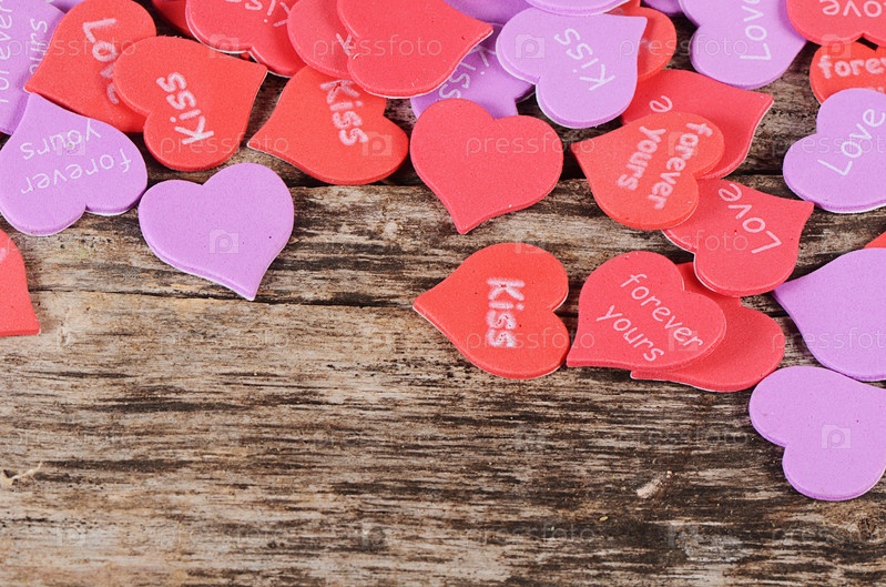 Сердца на деревянном фоне. День Святого Валентина
