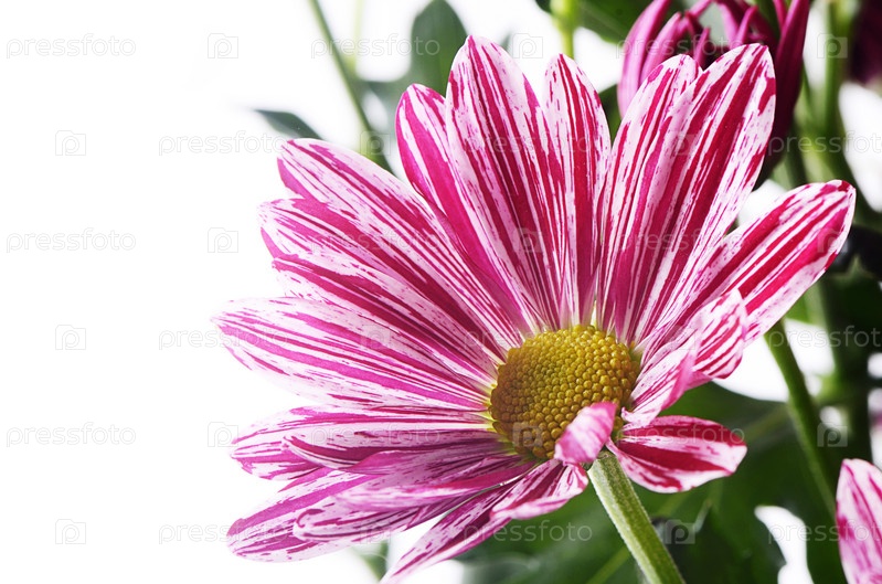 Розовый цветок хризантемы на белом фоне