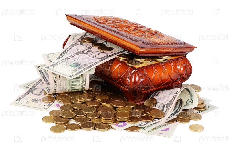 Монеты и банкноты в шкатулке