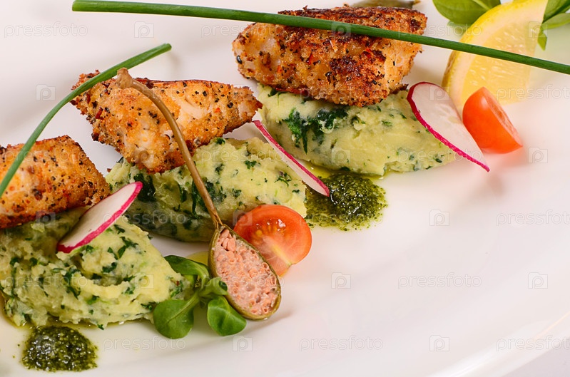 Рыба в сухарях с картофельным пюре