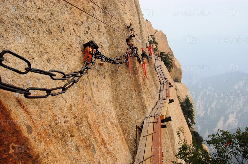 Опасная дорога в верхней части Святой горы Хуа Шан, Китай
