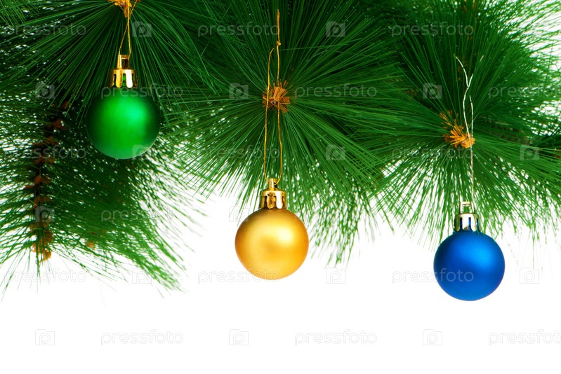 Новогодние украшения висят на елке