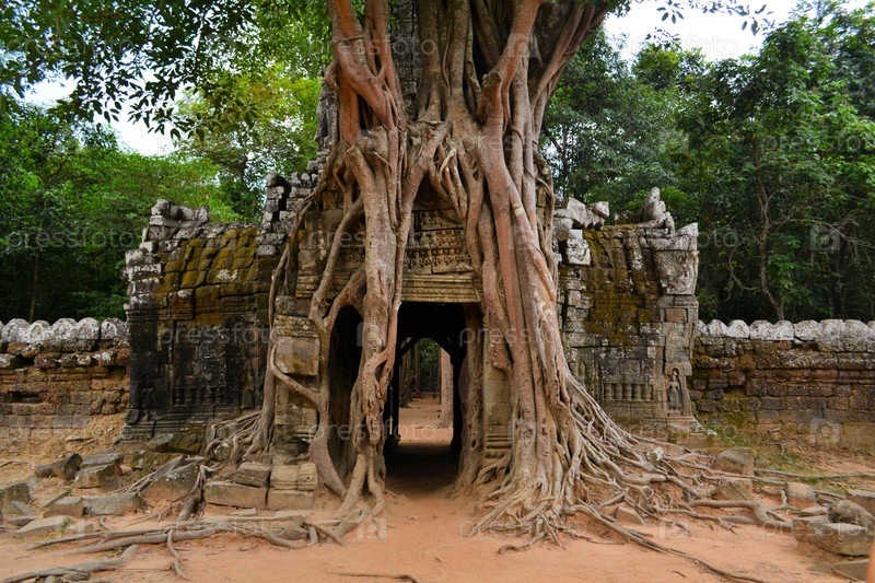 Древний храм Ангкор, заросший деревьями, Камбоджа