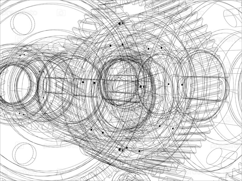 Чертеж шестерней с валами крупным планом. Вектор
