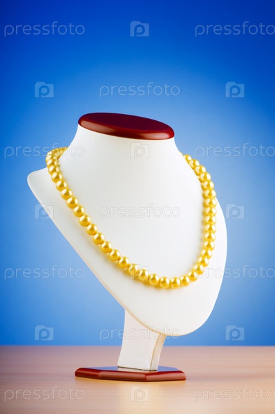 Стенд с ожерельем на синем фоне