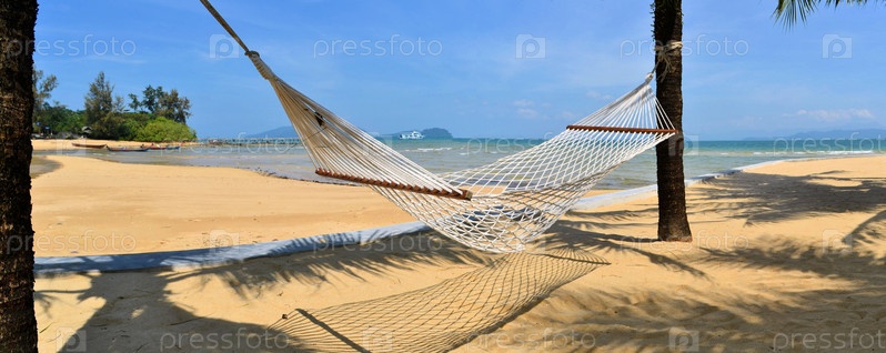 Гамак в тени пальм на тропическом пляже