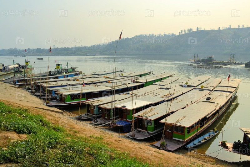Лодки на реке Меконг в Лаосе