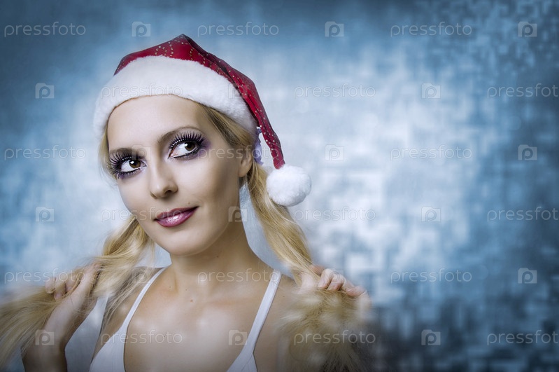 Портрет красивой женщины в шапке Санта-Клауса