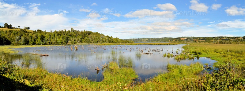 Пруд в болотистой местности на острове Чилоэ, Патагония, Чили