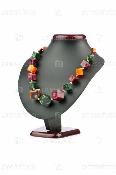 Стенд с ожерельем, изолированный на белом фоне