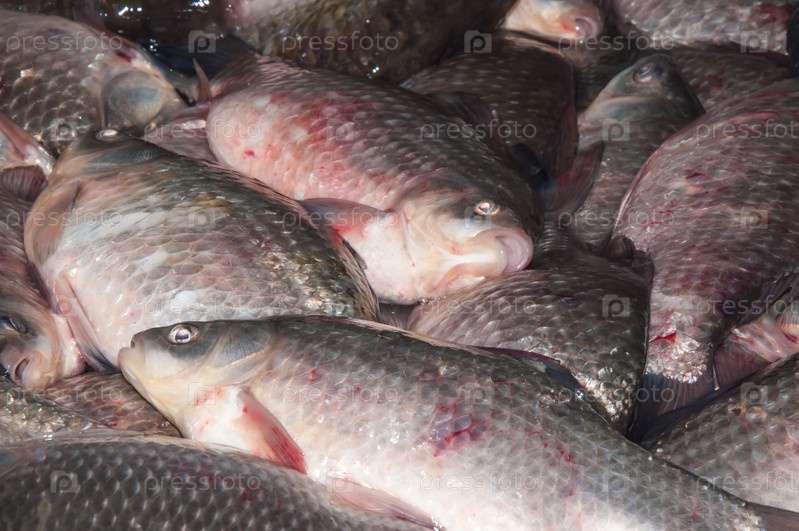Свежая рыба карась на базаре