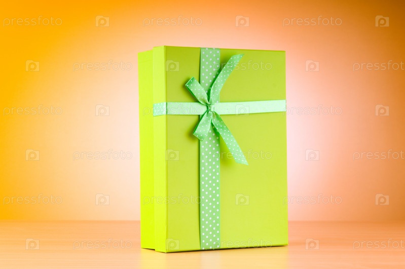Зеленая подарочная коробка на оранжевом фоне