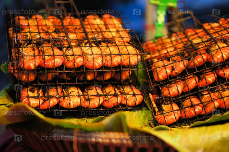 Жареные креветки на гриле