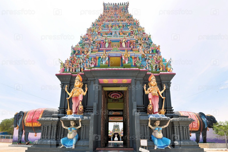 Индуистский храм на острове с фигурами слонов, Шри-Ланка