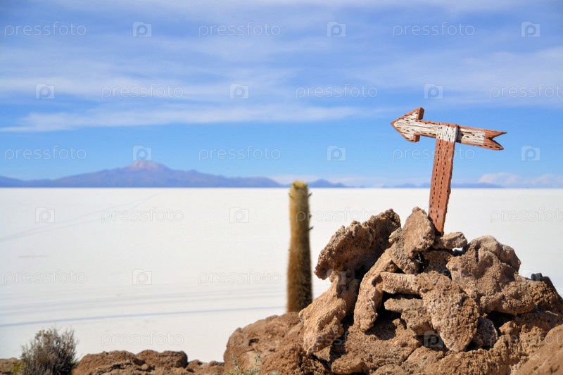 Кактус на острове в Инкахуаси на соляных равнинах Уюни