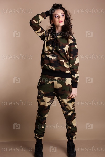 Девушка в спортивном костюме камуфляжной расцветки