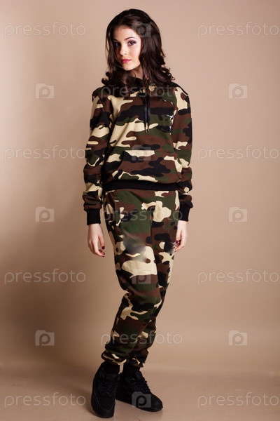 Девушка в спортивном костюме камуфляжной расцветки