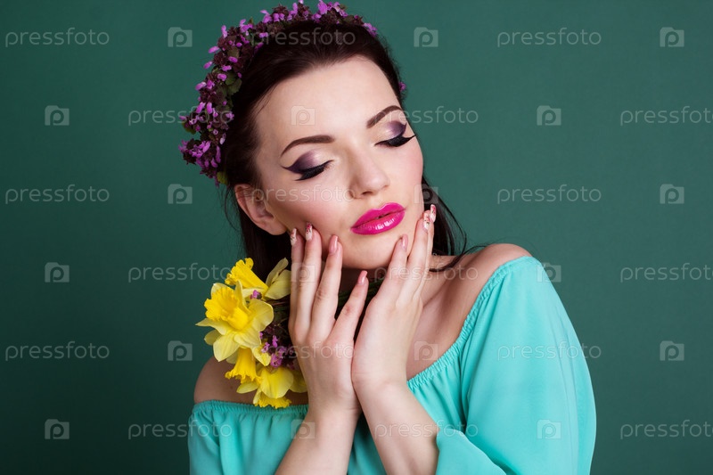 Красивая девушка в венке из фиолетовых цветов