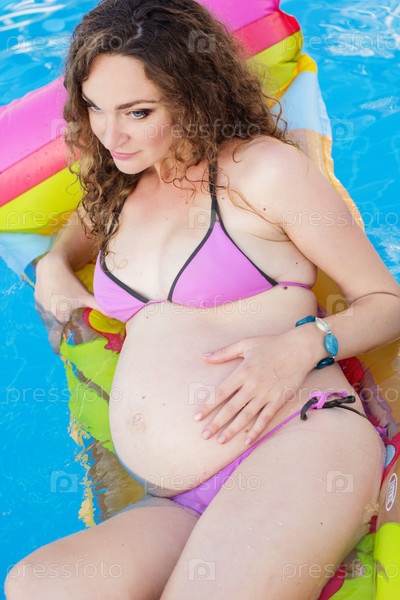 Красивая беременная женщина у голубого бассейна