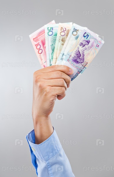 Рука держит китайские банкноты