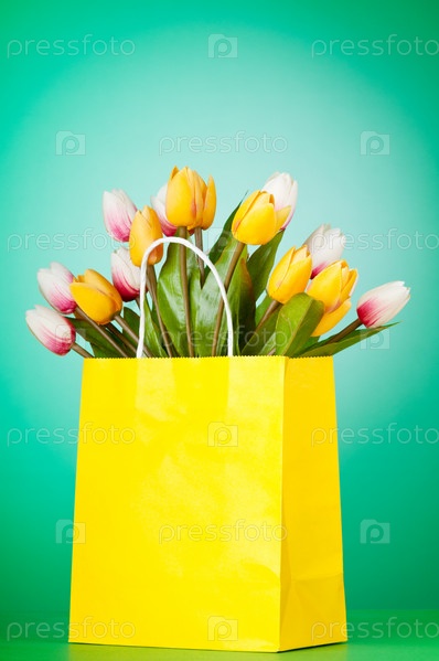 Подарочный пакет с букетом тюльпанов