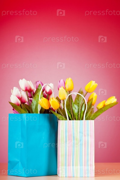 Подарочные пакеты с букетом тюльпанов