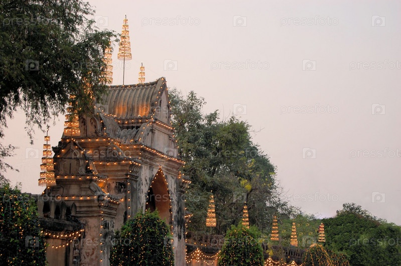 Освещенный вход в Королевский дворец, Лопбури, Таиланд