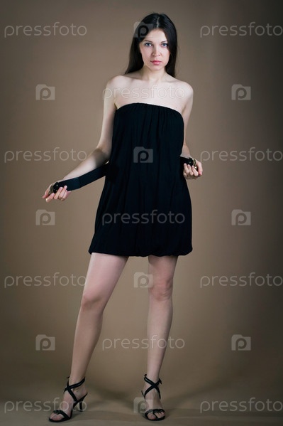 Девушка в черном платье на коричневом фоне
