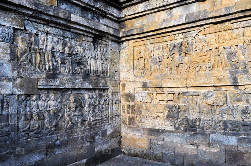 Фрески в храме Боробудур на острове Ява